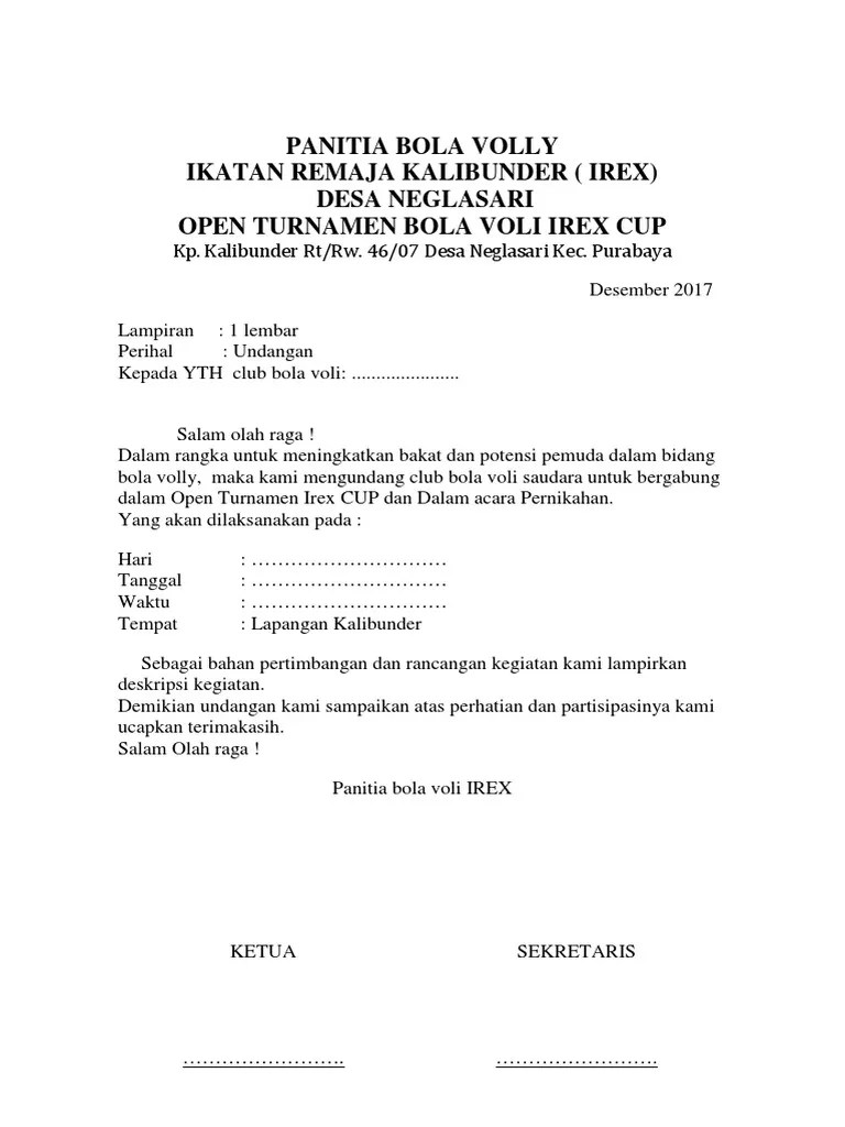 Undangan karang taruna bola voli docx. Find out the newest pictures of contoh surat undangan bola voli here, so you can receive. Undangan karang taruna bola voli docx. Contoh surat undangan pertandingan persahabatan bola volly antar . 90 contoh undangan volly persahabatan hd contoh undangan.